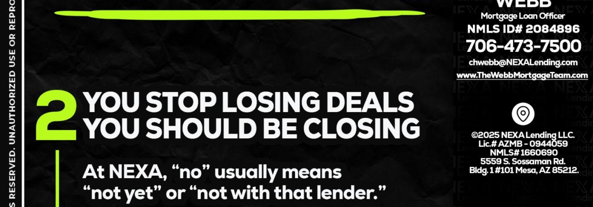 Hi, my name is Christopher Webb. I’m a Loan Officer with NEXA Lending LLC., offering personalized mortgage solutions, fast customized quotes, great rates and service with integrity.