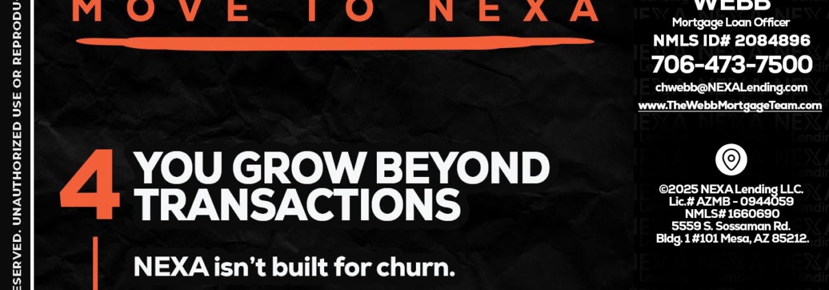 7 THINGS (4) - Christopher Webb -Mortgage Loan OfficerHi, my name is Christopher Webb. I’m a Loan Officer with NEXA Lending LLC., offering personalized mortgage solutions, fast customized quotes, great rates and service with integrity.