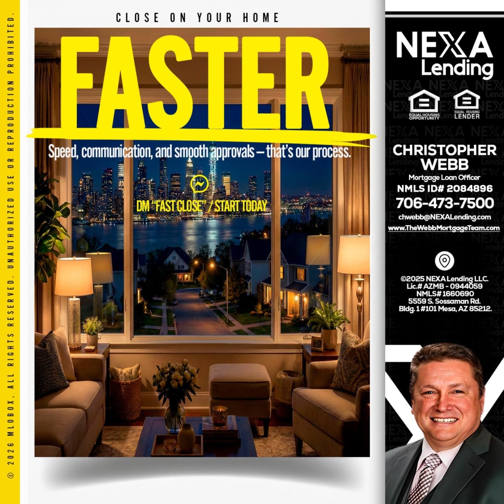Hi, my name is Christopher Webb. I’m a Loan Officer with NEXA Lending LLC., offering personalized mortgage solutions, fast customized quotes, great rates and service with integrity.