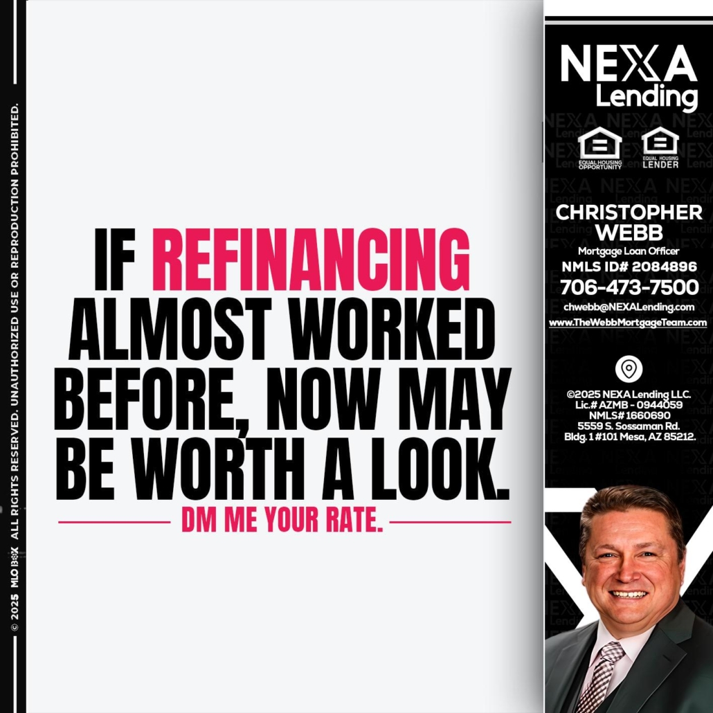 Hi, my name is Christopher Webb. I’m a Loan Officer with NEXA Lending LLC., offering personalized mortgage solutions, fast customized quotes, great rates and service with integrity.