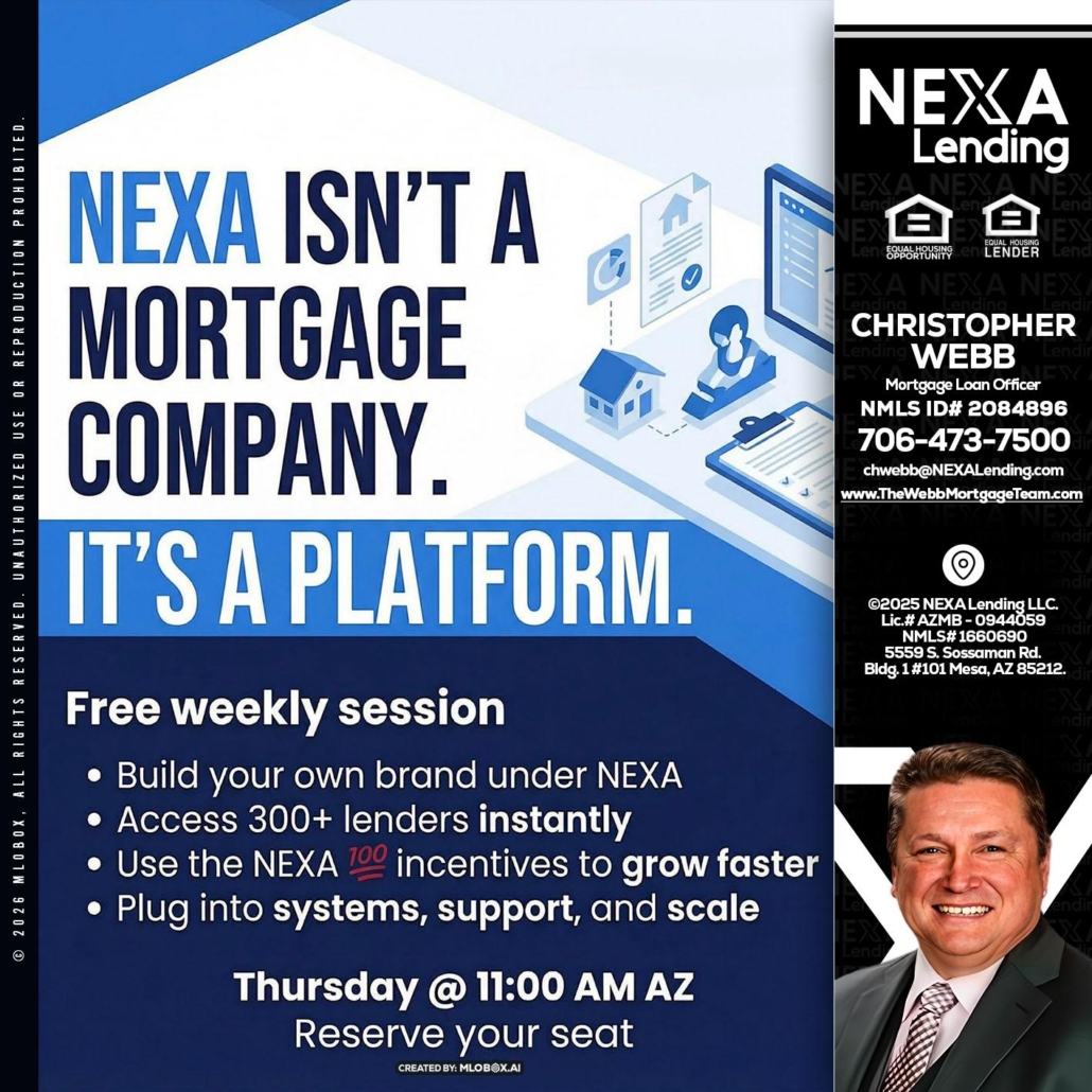 Hi, my name is Christopher Webb. I’m a Loan Officer with NEXA Lending LLC., offering personalized mortgage solutions, fast customized quotes, great rates and service with integrity.