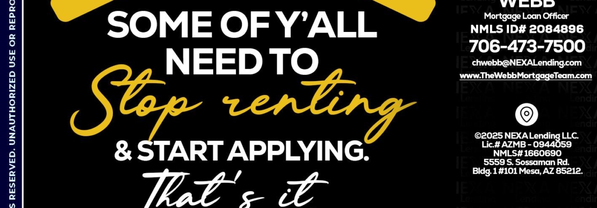 Hi, my name is Christopher Webb. I’m a Loan Officer with NEXA Mortgage LLC., offering personalized mortgage solutions, fast customized quotes, great rates and service with integrity.