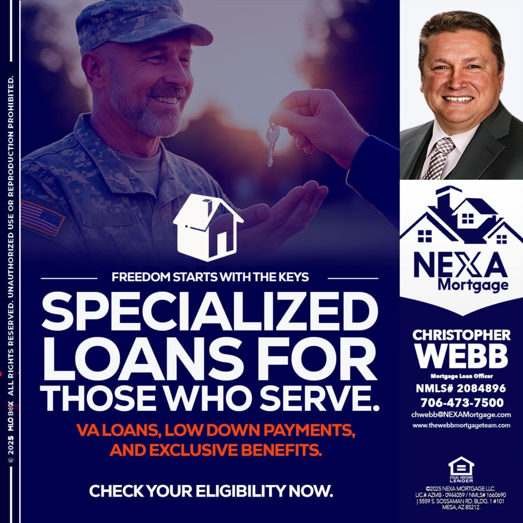 Hi, my name is Christopher Webb. I’m a Loan Officer with NEXA Mortgage LLC., offering personalized mortgage solutions, fast customized quotes, great rates and service with integrity.