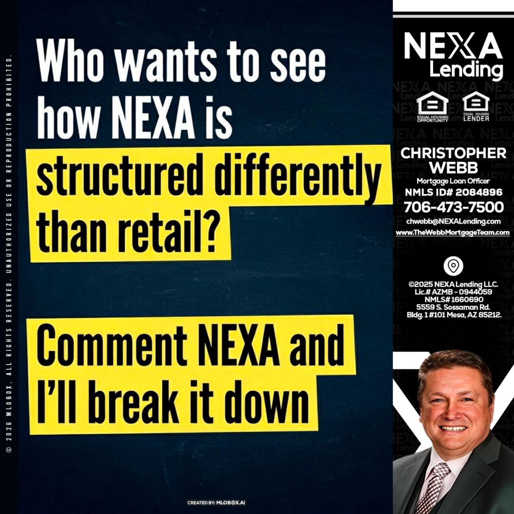 Hi, my name is Christopher Webb. I’m a Loan Officer with NEXA Lending LLC., offering personalized mortgage solutions, fast customized quotes, great rates and service with integrity.